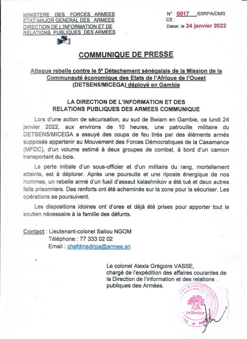 Attaque contre le 5e Détachement sénégalais de la Mission de la Communauté économique des Etats de l'Afrique de l'Ouest (DETSEN5/MICEGA) déployé en Gambie