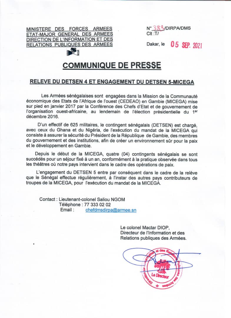 RELEVE DU DETSEN4 ET ENGAMENT DU DETSEN5-MICEGA